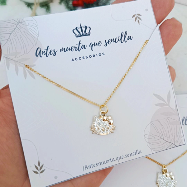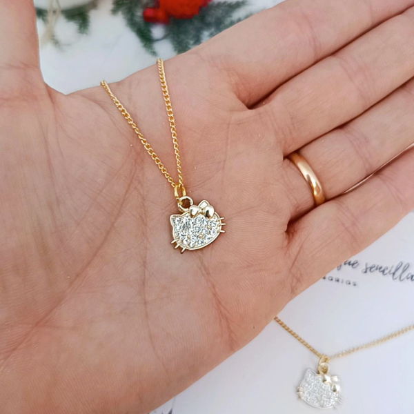 Collar de acero Dorado de 45 cm con dije Kitty laminado con strass
