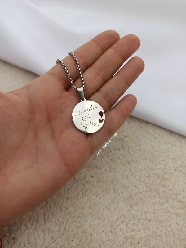 Collar acero quirúrgico con dije la vida es bella.