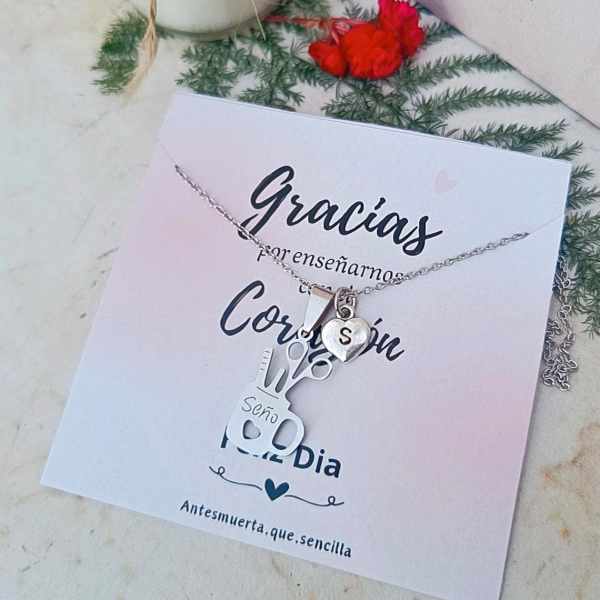 Collar y dije de acero quirúrgico de 45 cm con corazon grabado.