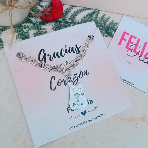 Pulsera de acero quirúrgico c dije delantal inicial.