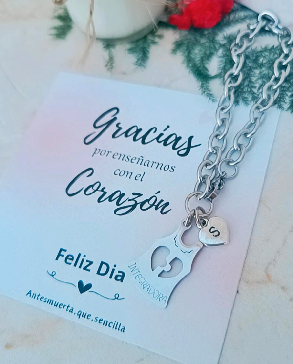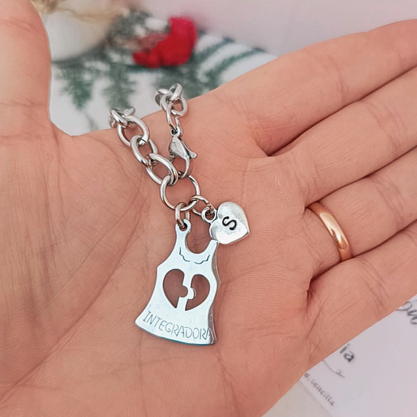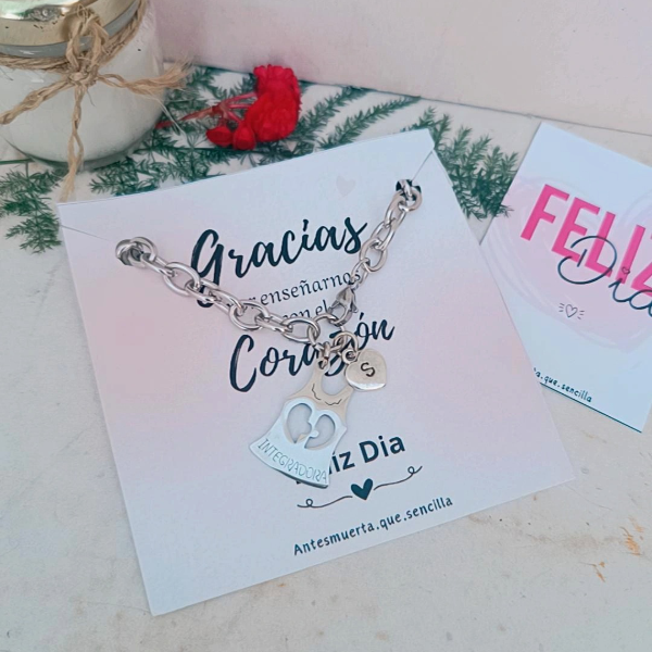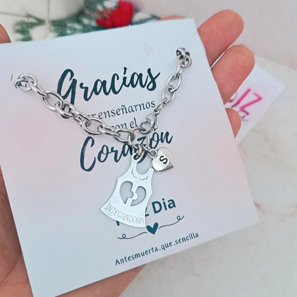 Pulsera de acero quirúrgico con dije Integradora más corazón Grabado.
