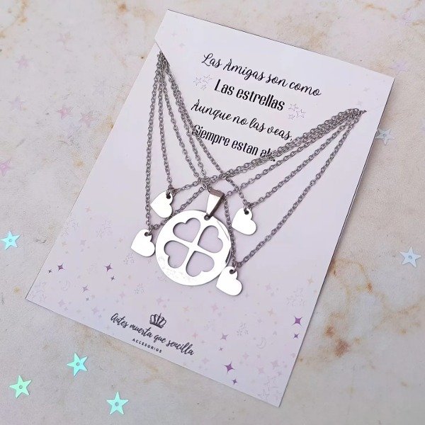 Collar para compartir,medalla y cuatro corazoncitos ,total 5 collares de acero quirúrgico 50 CM