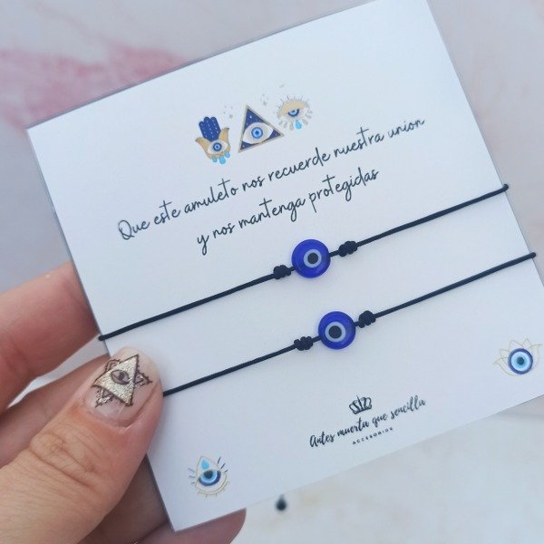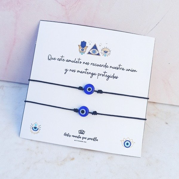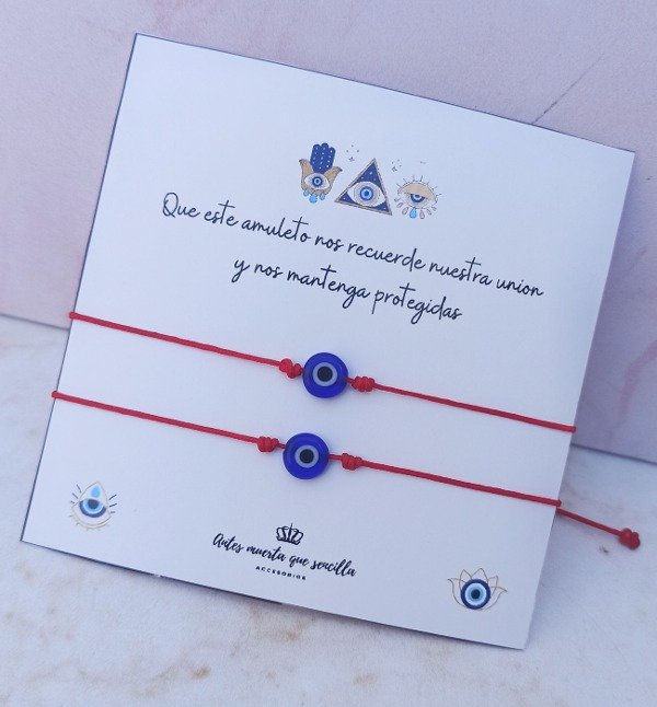 Par de pulseras hilo de seda con ojo turco de vidrio, disponible hilo rojo y negro.