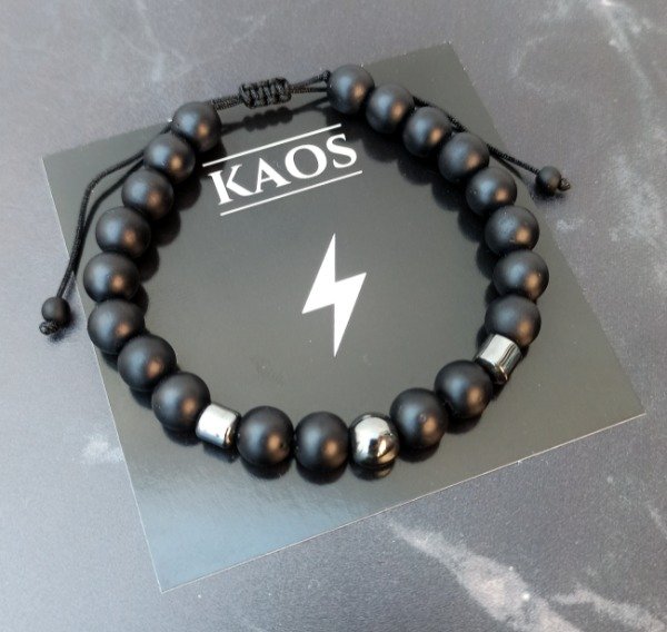 Pulsera regulable de perlas mate y piedra hematite.