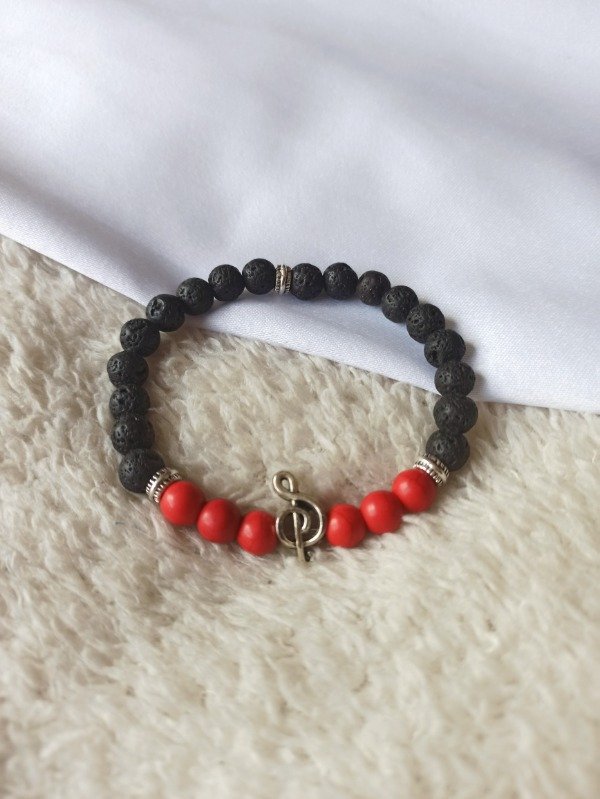 Pulsera regulable de piedras ónix, Rojas y dije clave de sol