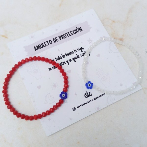 Pulsera elástica de cristales con ojito turco de vidrio con forma de flor