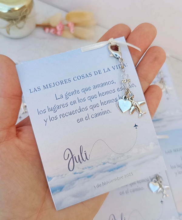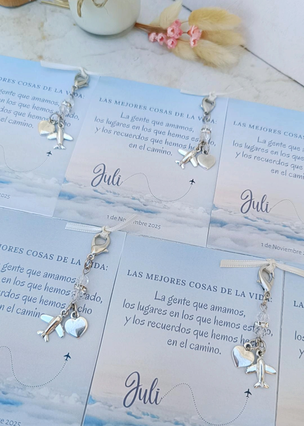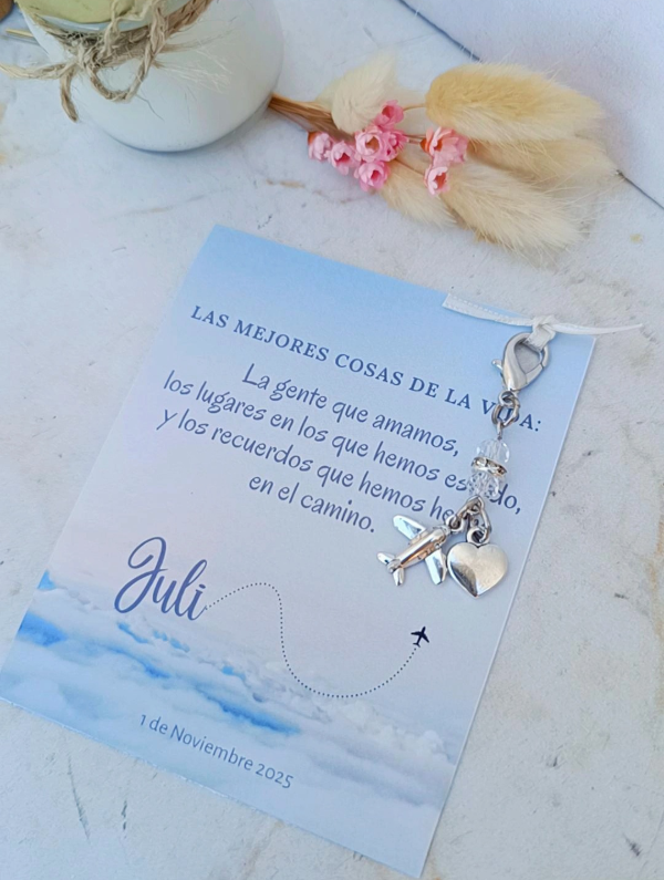Accesorios colgantes ideales para billeteras ,riñoneras, carteras,bolsos. De cristales de roca ( colores a elección)con dona de strass, En este caso con dijes de avion y corazón , podés consultar por otros dijes.
