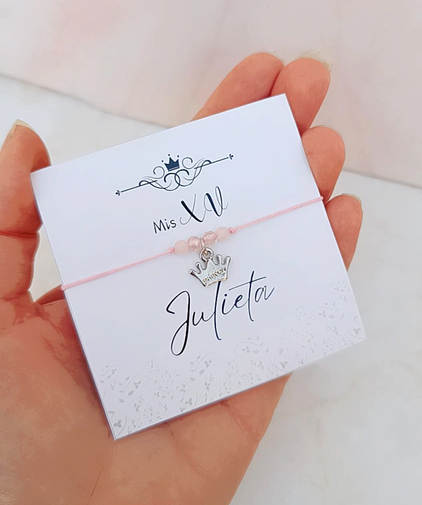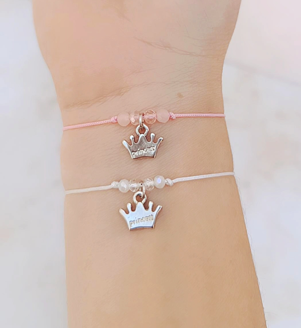 Pulseritas regulables de hilo de seda color a elección con dije a elección y cristales.